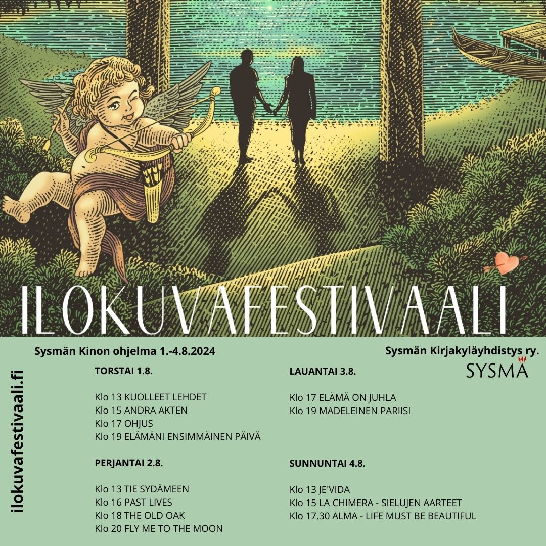 Sysmän Kirjakyläyhdistys ry järjestää yhdessä Sysmän Kinon kanssa tämän vuoden Ilokuvafestivaalin Sysmän Teatteritalolla, Väihkyläntie 1. LIPUT 10€/hlö